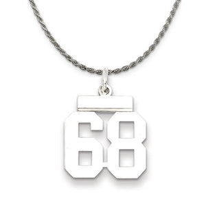 Celebrate your favorite sports player, lucky number or milestone date in your life with a prominent rhodium-plated sterling silver charm. Each polished number is approximately 18mm (11/16 inch) in length, which is finished with a 2mm top bar and a classic jump ring. Includes a flexible and strong diamond cut rope chain. This stunning chain is 2.25mm in width, 20 inches in length and features a sturdy lobster claw clasp. The chain is crafted in Italy.