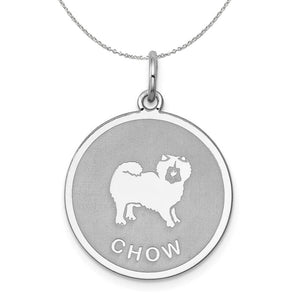 Sterling Silver Laser Etched Chow Dog 19mm Necklace