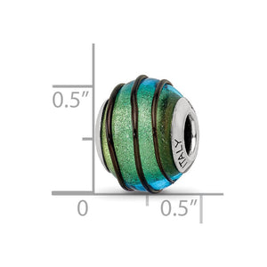 Teal with Black Stripes Murano & Sterling Silver Bead Charm, 15mm