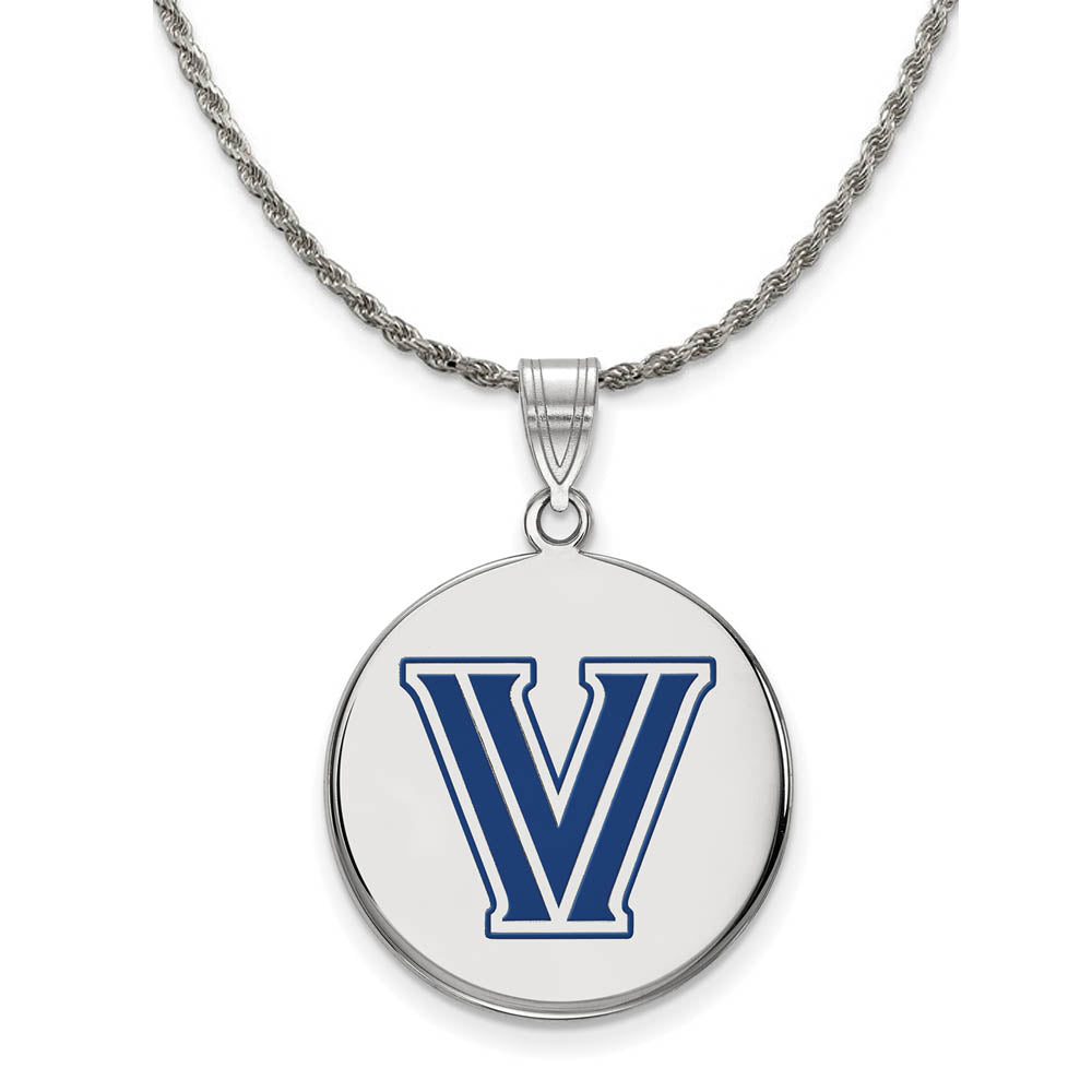 • If you are a fan of Villanova University and the Wildcats then you need to show your school spirit with this Villanova University pendant. We are a certified college jewelry retailer and this authentic item is officially licensed. It is crafted from Sterling Silver and crafted by LogoArt in the USA. Includes a flexible and strong diamond cut rope chain. This stunning chain is 2.25mm in width, 24 inches in length and features a sturdy lobster claw clasp. The chain is crafted in Italy.