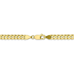 Flat curb links of 10k yellow gold enhanced with beveled edges form an attractive necklace that looks great alone or layered with multiple chains to complete your desired style. It features solid links that measures 4.6mm in width by 24-inches in length and closes with a reliable lobster clasp.