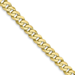 Flat curb links of 10k yellow gold enhanced with beveled edges form an attractive necklace that looks great alone or layered with multiple chains to complete your desired style. It features solid links that measures 4.6mm in width by 22-inches in length and closes with a reliable lobster clasp.