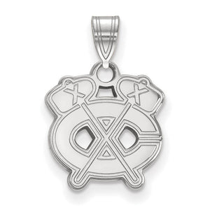 It is time to celebrate your favorite team, the Chicago Blackhawks! This NHL pendant created from rhodium-plated 14k white gold is officially licensed by the Chicago Blackhawks and crafted in the USA. The approximate size is 13mm (1/2 inch) in width by 18mm (11/16 inch) in length with the bail. This item does not include a chain.