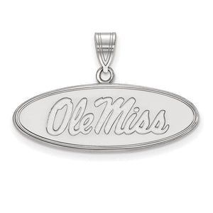 14k White Gold U. of Mississippi Medium Oval 'Ole Miss' Pendant - Black Bow Jewelry Company