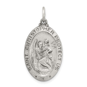 Sterling Silver St Christopher Oval Sports Medal Pendant, 15 x 31mm - Black Bow Jewelry Company