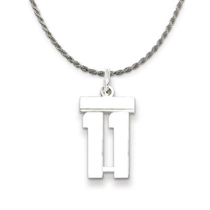 Celebrate your favorite sports player, lucky number or milestone date in your life with a prominent rhodium-plated sterling silver charm. Each polished number is approximately 18mm (11/16 inch) in length, which is finished with a 2mm top bar and a classic jump ring. Includes a flexible and strong diamond cut rope chain. This stunning chain is 2.25mm in width, 18 inches in length and features a sturdy lobster claw clasp. The chain is crafted in Italy.