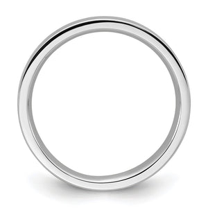 A sleek contemporary style band created in rhodium-plated 10k white gold with a polished finish. This unisex band features a flat profile, a comfort fit shank, is approximately 1.8mm in thickness (standard weight), and 3mm in width. Suitable for engraving. Made in the U.S.A.