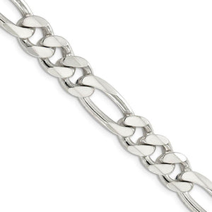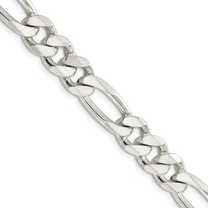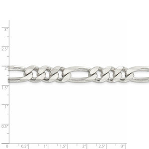 Displaying a modern design with a pave texture and flat profile that provides added dimension and style, this solid link sterling silver Figaro chain will give any outfit a glamorous touch. Measures approximately 10.5mm in width by 22-inches in length, closes with a lobster claw clasp and is especially suited for the well-dressed man.