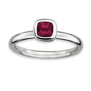 Silver Stackable Cushion Cut Rhodolite Garnet Solitaire Ring - Black Bow Jewelry Company