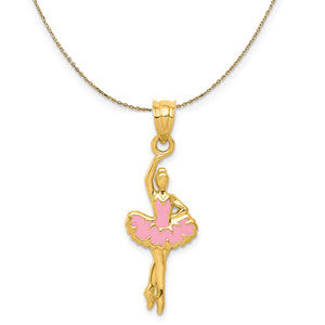 14k Yellow Gold 2D Pink Enameled Ballerina Necklace