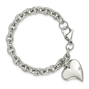 Women's 6mm Stainless Steel Heart and CZ Charm Bracelet, 7.5 Inch - Black Bow Jewelry Company