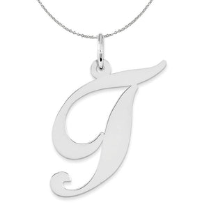 Sterling Silver, Ella Collection, LG Fancy Script Initial T Necklace