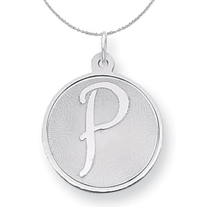 Sterling Silver, Makayla Collection, 20mm Disc Initial P Necklace - Black Bow Jewelry Company