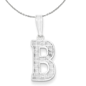 Make your mark and create a look that is all about you or special loved one with a bold block initial pendant designed from solid sterling silver. It features a polished and textured pattern and each letter measures approximately 16mm (5/8 Inch) in length, which dangles from a tapered bail giving it an overall length of approximately 25mm (1 Inch). Includes a 1.25mm, 24 inch sterling silver cable chain.