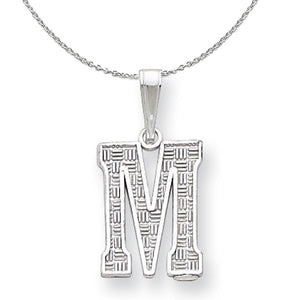 Sterling Silver, Sami Collection, Textured Block Initial M Necklace