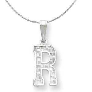 Sterling Silver, Sami Collection, Textured Block Initial R Necklace - Black Bow Jewelry Company