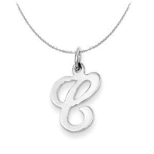 Indulge in a traditional initial charm that subtly enhances and personalizes your jewelry. Each small script style letter is approximately 15mm (9/16 inch) in length, finished with a standard jump ring, and fashioned from polished sterling silver. Includes a 1.25mm, 18 inch sterling silver cable chain.