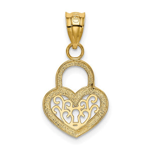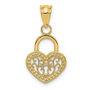 14k Yellow Gold Filigree Heart Key Hole Lock Pendant, 12mm - Black Bow Jewelry Company