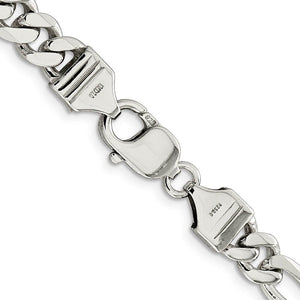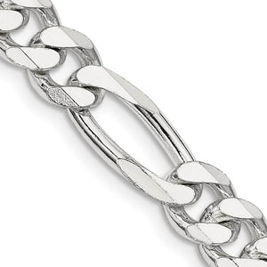 Mens 7.75mm Rhodium Plated Sterling Silver Solid Figaro Chain Bracelet