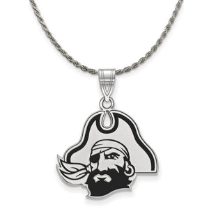 If you are a fan of East Carolina University and the Pirates then you need to show your school spirit with this East Carolina University pendant. We are a certified college jewelry retailer and this authentic item is officially licensed. It is crafted from Sterling Silver and crafted by LogoArt in the USA. Includes a flexible and strong diamond cut rope chain. This stunning chain is 2.25mm in width, 22 inches in length and features a sturdy lobster claw clasp. The chain is crafted in Italy.