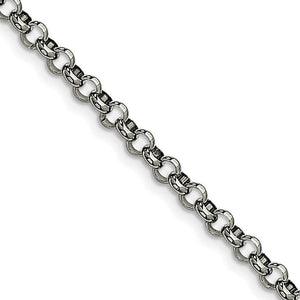 Known for its stunning broad links, this 4.6mm, 36 inch rolo chain featuring a high polished finish is fashioned from 316L stainless steel and closes with a fancy lobster clasp.