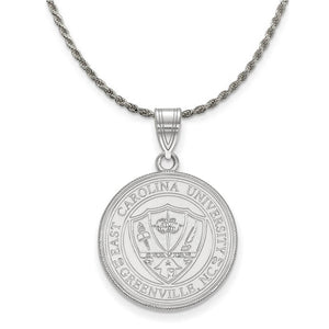 If you are a fan of East Carolina University and the Pirates then you need to show your school spirit with this East Carolina University pendant. We are a certified college jewelry retailer and this authentic item is officially licensed. It is crafted from Sterling Silver and crafted by LogoArt in the USA. Includes a flexible and strong diamond cut rope chain. This stunning chain is 2.25mm in width, 18 inches in length and features a sturdy lobster claw clasp. The chain is crafted in Italy.