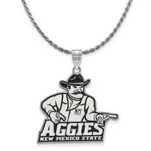 If you are a fan of New Mexico State University and the Aggies then you need to show your school spirit with this New Mexico State University pendant. We are a certified college jewelry retailer and this authentic item is officially licensed. It is crafted from Sterling Silver and crafted by LogoArt in the USA. Includes a flexible and strong diamond cut rope chain. This stunning chain is 2.25mm in width, 20 inches in length and features a sturdy lobster claw clasp. The chain is crafted in Italy.
