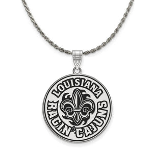 If you are a fan of The University of Louisiana Lafayette and the Ragin' Cajuns then you need to show your school spirit with this University of Louisiana Lafayette pendant. We are a certified college jewelry retailer and this authentic item is officially licensed. It is crafted from Sterling Silver and crafted by LogoArt in the USA. Includes a flexible and strong diamond cut rope chain. This stunning chain is 2.25mm in width, 18 inches in length and features a sturdy lobster claw clasp. The chain is crafted in Italy.