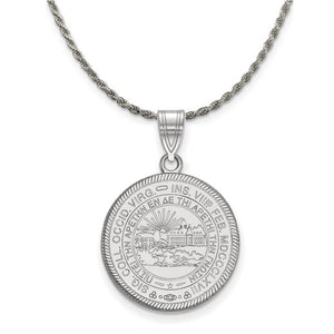 Sterling Silver West Virginia U. Large Crest Pendant Necklace - Black Bow Jewelry Company