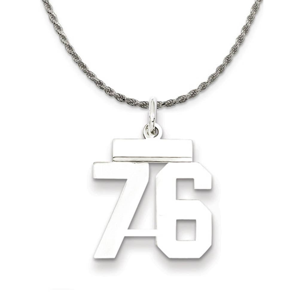 Sterling Silver Athletic Lg Polished Number 76 Necklace - Black Bow Jewelry Company