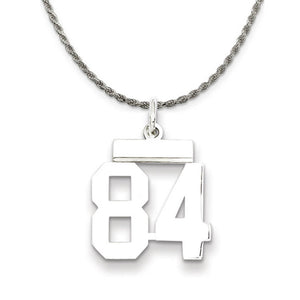 Celebrate your favorite sports player, lucky number or milestone date in your life with a prominent rhodium-plated sterling silver charm. Each polished number is approximately 18mm (11/16 inch) in length, which is finished with a 2mm top bar and a classic jump ring. Includes a flexible and strong diamond cut rope chain. This stunning chain is 2.25mm in width, 20 inches in length and features a sturdy lobster claw clasp. The chain is crafted in Italy.