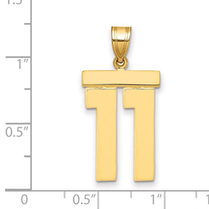 14k Yellow Gold, Athletic Collection, Large Polished Number 11 Pendant - Black Bow Jewelry Company