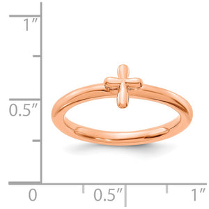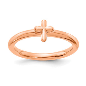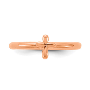 Create a look that is all your own with a fun assortment of rings that looks great alone or stacked in a collection to express your own unique style. This polished ring fashioned from 14k rose gold-plated sterling silver features a 6. x 4.5mm cross atop a 2.5mm width band. Guaranteed to fit together perfectly with all of the mix and match Stackable Expressions rings.