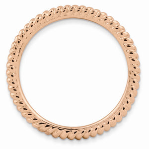 Make it simple and stylish with bands of different textures, finishes, widths and colors! This 14k rose gold plated sterling silver band features a twisted design with a high polished finish that measures 1. Mm wide. Guaranteed to fit together perfectly with all of the mix and match Stackable Expressions rings.