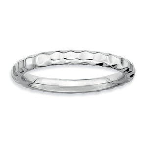 Make it simple and stylish with bands of different textures, finishes, widths and colors! This rhodium plated sterling silver band features a hammered design with a high polished finish that measures 2.5mm wide. Guaranteed to fit together perfectly with all of the mix and match Stackable Expressions rings. This item is backordered. Please allow 7-10 business days for delivery