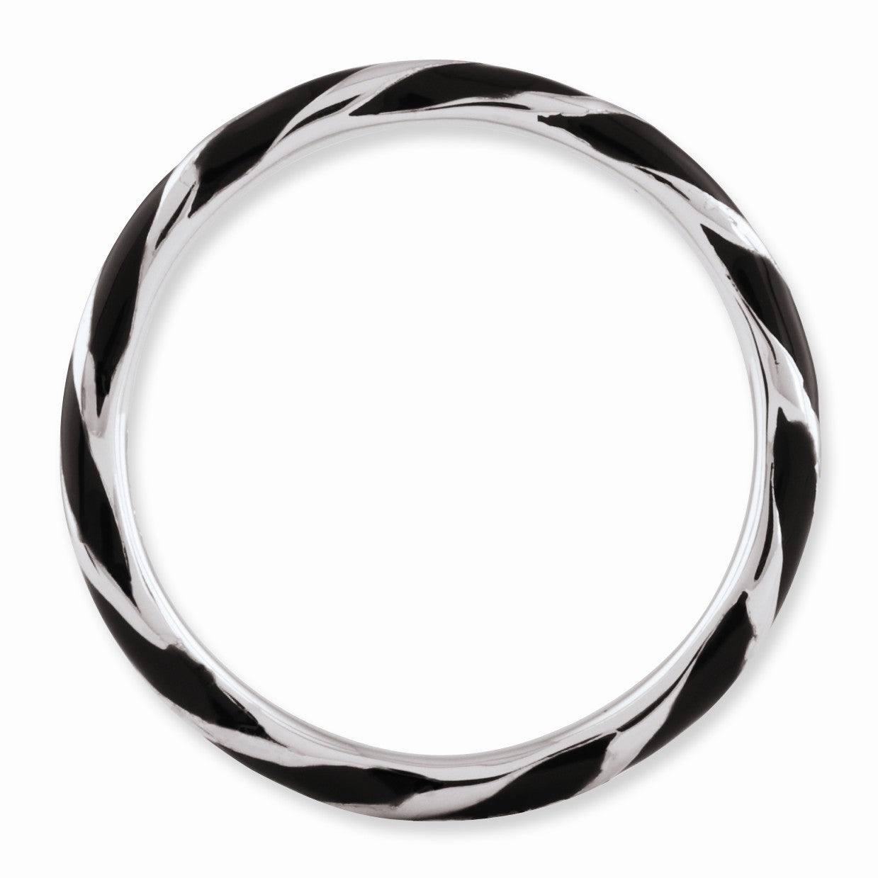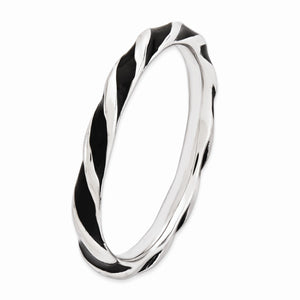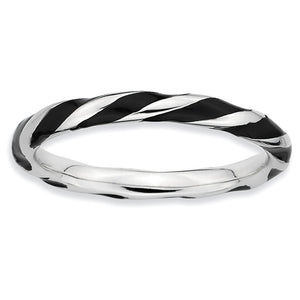 Create the perfect stack with enameled bands available in 10 vibrant colors. Featuring a twisted stripe of black enamel this 2. Mm sterling silver band is finished with tarnish resistant rhodium plating so it will retain its bright white finish. Guaranteed to fit together perfectly with all of the mix and match Stackable Expressions rings.