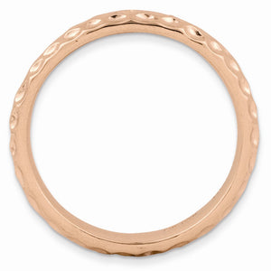 Make it simple and stylish with bands of different textures, finishes, widths and colors! This 14k rose gold plated sterling silver band features a hammered design with a high polished finish that measures 3.5mm wide. Guaranteed to fit together perfectly with all of the mix and match Stackable Expressions rings.