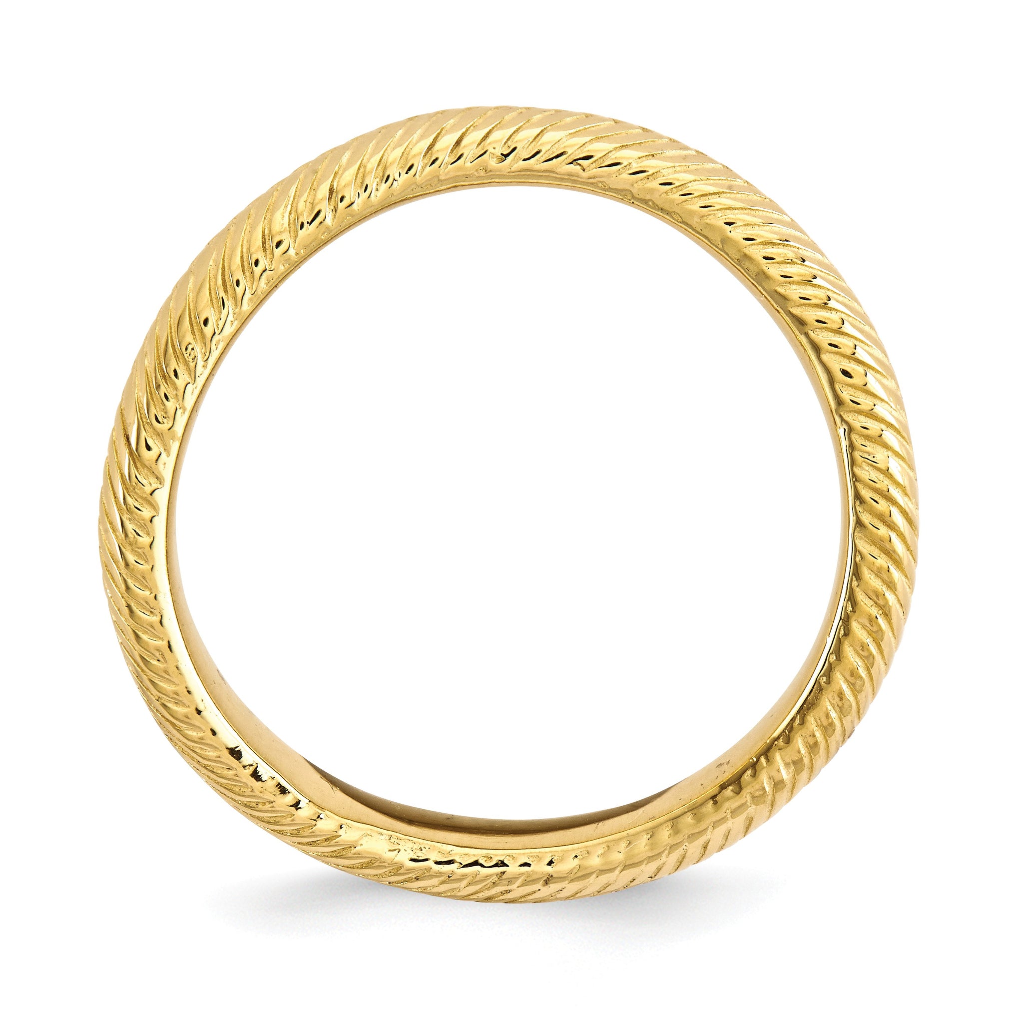 Contemporary geometric style! Create a unique stacked design with curved bands of different colors, patterns and widths. This 3.5mm band fashioned from sterling silver features a polished 14k gold plated finish, a gentle wave shape and a herringbone pattern. Wear it alone or stack with other curved bands only.