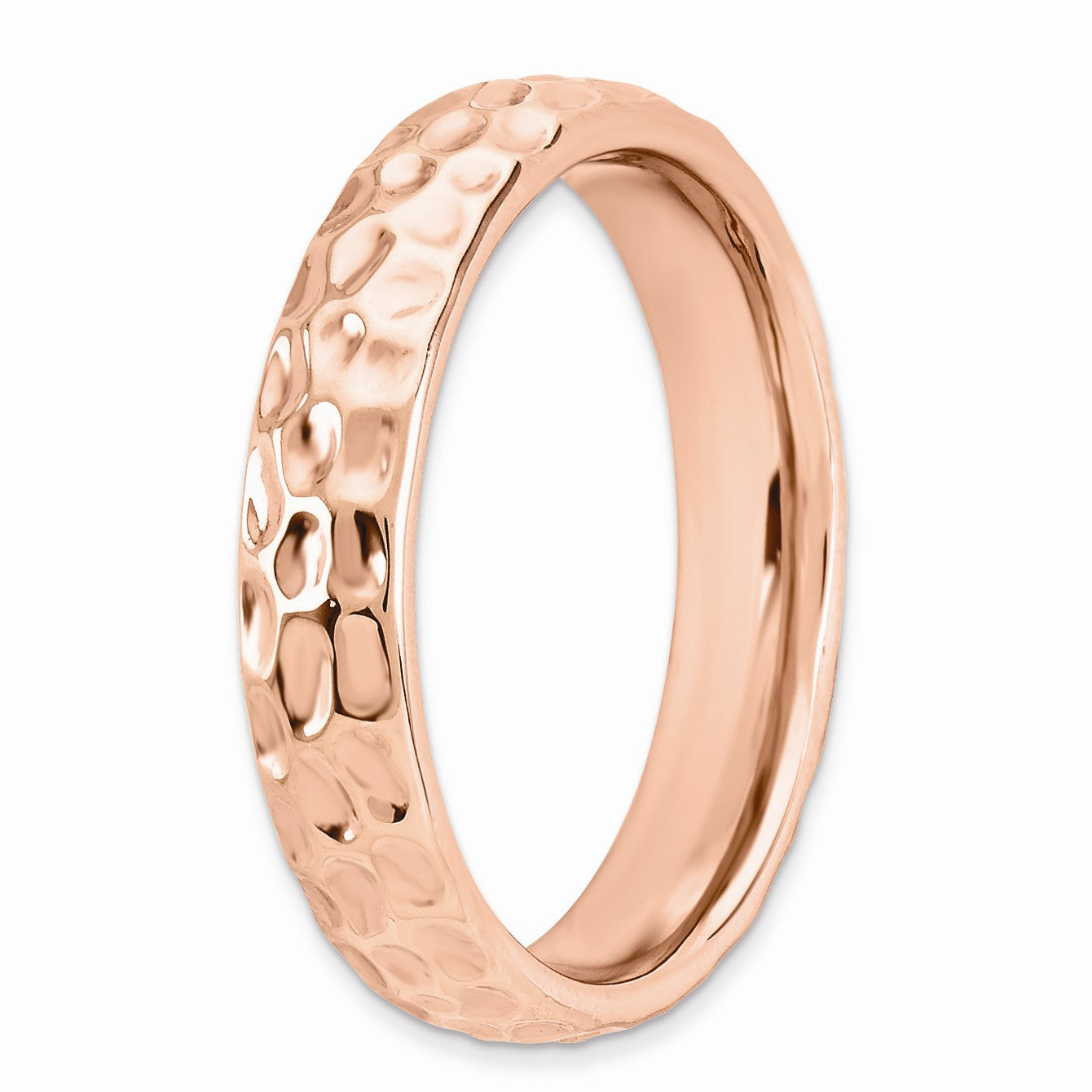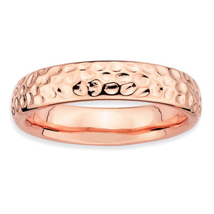 • Make it simple and stylish with bands of different textures, finishes, widths and colors! This 14k rose gold plated sterling silver band features a hammered design with a high polished finish that measures 4. Mm wide. Guaranteed to fit together perfectly with all of the mix and match Stackable Expressions rings.