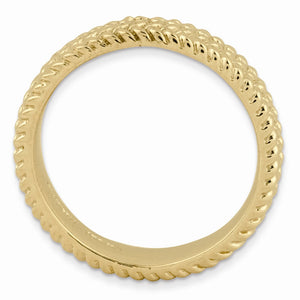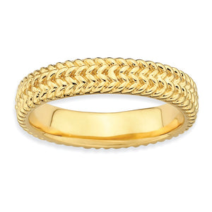 Make it simple and stylish with bands of different textures, finishes, widths and colors! This 14k yellow gold plated sterling silver band features a wheat design with a high polished finish that measures 4. Mm wide. Guaranteed to fit together perfectly with all of the mix and match Stackable Expressions rings.