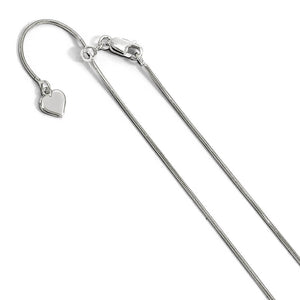 A smooth and flexible snake chain with its classic round design will show off your favorite pendant or charm to perfection. Fashioned from polished rhodium plated sterling silver, this delicate 1mm width necklace features a slide mechanism with a lobster clasp that adjusts to any length up to 30 inches. Made in Italy.