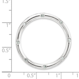 The options are limitless to brighten your style with sparkle and shine with this new and exciting line of Stackable Expressions pendant slides. Looks great alone or stacked with a medium and small pendant slide to create a simple and sleek or extravagant layered design. This large polished slide is approximately 29mm (1 1/8 inch) in diameter and fashioned from tarnish resistant rhodium plated sterling silver with 8 flush set heat-treated aquamarine stones. The total gemstone weight is .13 of a carat. Color range varies on all natural stones so please allow for slight variations in shades (pale blue-green to nearly colorless). For best results when mixing and matching multiple slides we recommend using a Stackable Expressions custom designed pendant chain. Chain not included.