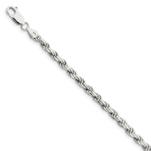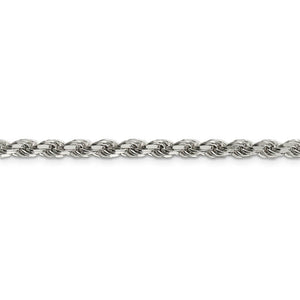 Rope chains made of twisted and braided sterling silver enhanced with diamond-cuts are extremely popular because they offer a classy design with maximum shine. Flexible and strong, this elegant anklet or bracelet measures approximately 4.25mm in width by 9-inches in length and features a solid link construction with a sturdy lobster claw clasp. Made in Italy. This item is backordered and we estimate it to ship in approx. 10-12 days. Please email service@theblackbow.com for more details.