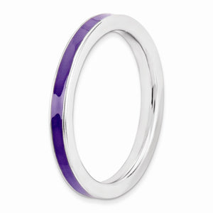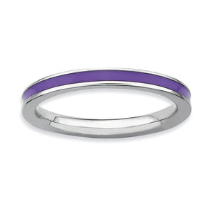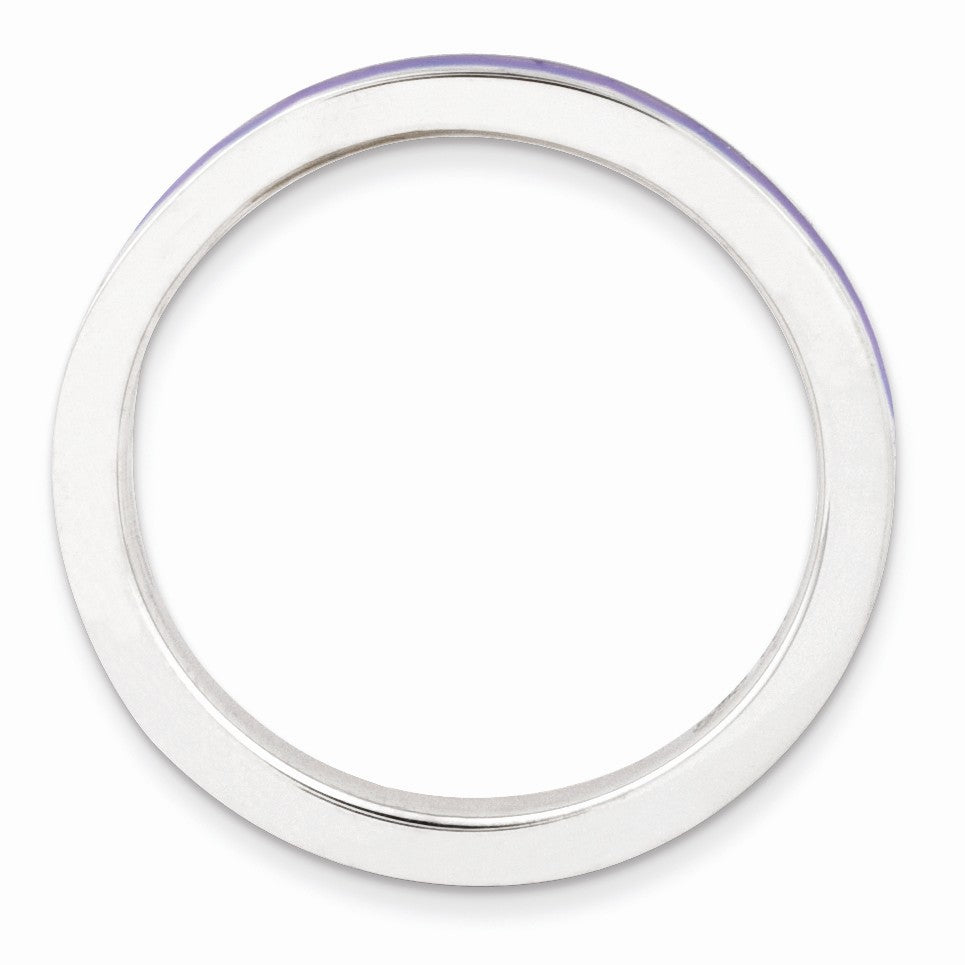 Create the perfect stack with enameled bands available in 10 vibrant colors. Featuring a center stripe of purple enamel this 2.5mm sterling silver band is finished with tarnish resistant rhodium plating so it will retain its bright white finish. Guaranteed to fit together perfectly with all of the mix and match Stackable Expressions rings.