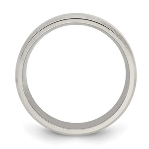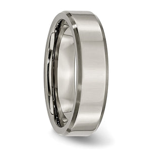 Titanium's beautiful lustrous color combined with its versatile properties makes it a superb choice for those who want a ring that will endure the test of time. This 6mm comfort-fit band features a polished flat center and brushed beveled edges. Suitable for engraving.