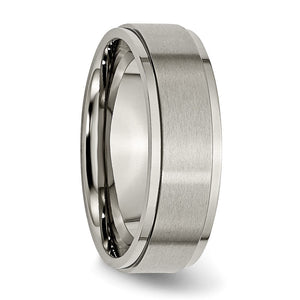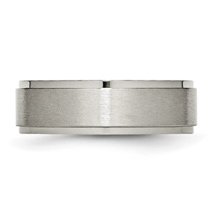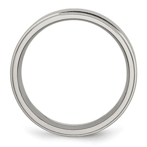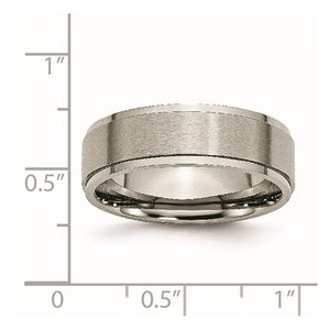 Titanium's beautiful lustrous color combined with its versatile properties makes it a superb choice for those who want a ring that will endure the test of time. This 7mm width comfort-fit band features a timeless flat design with a lightly brushed center and polished ridged edges. Suitable for engraving.