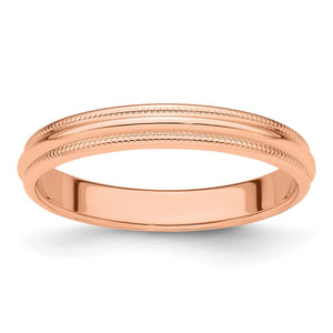 3mm 14K Rose, White, or Yellow Gold Half Round Milgrain Standard Band