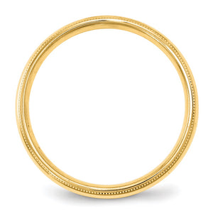 A tried and true favorite style featuring a half round or low domed center with milgrain edges created from solid 10k yellow gold. This polished unisex band has a comfort fit shank, is approximately 2mm in thickness (standard weight) and 4mm in width. Suitable for engraving.�