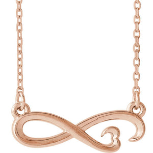14k White, Yellow or Rose Gold Infinity Heart Necklace, 16-18 Inch