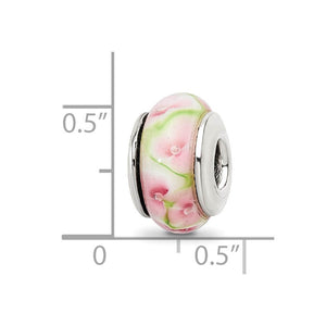 Pink & Green Floral Glass Sterling Silver Bead Charm